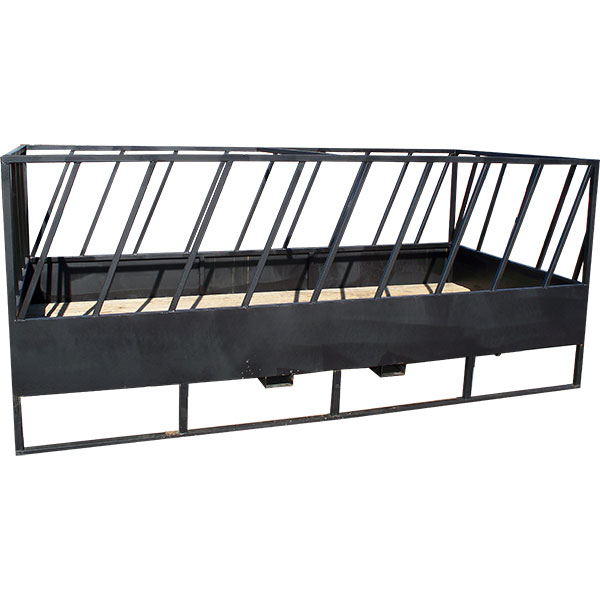 Our bale feeders are made of heavy, durable steel, with wood bottom floor. Constructed with slots at bottom of feeder for easy access for skid steer pallet forks to pick up and move!