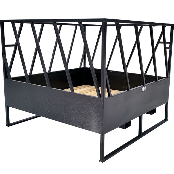 Our bale feeders are made of heavy, durable steel, with wood bottom floor. Constructed with slots at bottom of feeder for easy access for skid steer pallet forks to pick up and move!